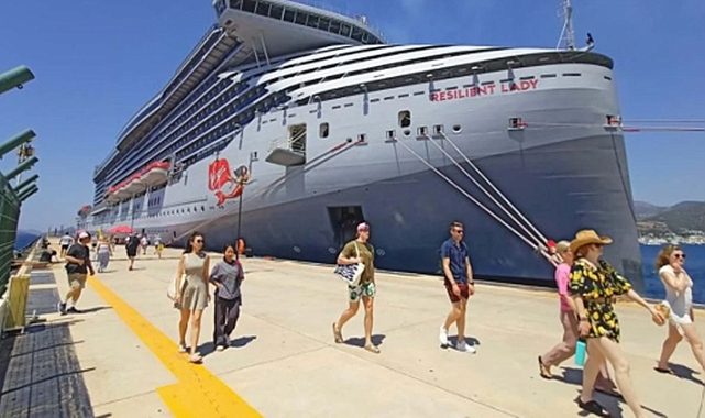 Muğla'nın dünyaca ünlü turistik ilçesi Bodrum’a gelen kruvaziyer 2 bin 606 turist getirdi. Kente gelen turistler tarihi noktaları ziyaret ederken, çarşıda vakit geçirdi.Bu kapsamda, Bahamalar bayraklı 277 metre uzunluğundaki kruvaziyer saat 08.00’da Santorini Limanı'ndan Bodrum’a geldi.Gemide ağırlıklı olarak ABD’li olmak üzere 2 bin 606 yolcu ve 1149 personel bulunuyor. Kente gelen turistler tarihi noktaları ziyaret etti, çarşıda alışveriş yaparak vakit geçirdi.Kruvaziyerin ise saat 20.00’da Mikonos’a hareket edeceği belirtildi.