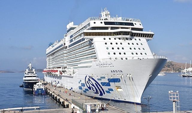 Muğla’nın Bodrum ilçesi, kruvaziyer turizminin gözde gemilerinden Aroya’yı bir kez daha ağırladı. Malta bayraklı, 335 metre uzunluğunda, 44 metre genişliğinde ve 61 metre yüksekliğindeki dev gemi, Marmaris Limanı’ndan hareket ederek sabah saatlerinde Bodrum Gemi Yanaşma İskelesi’ne yanaştı.
