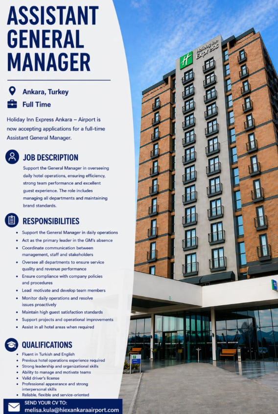 Holiday Inn Express Ankara Airport Genel Müdür Yardımcısı iş ilanının detayları şöyle: