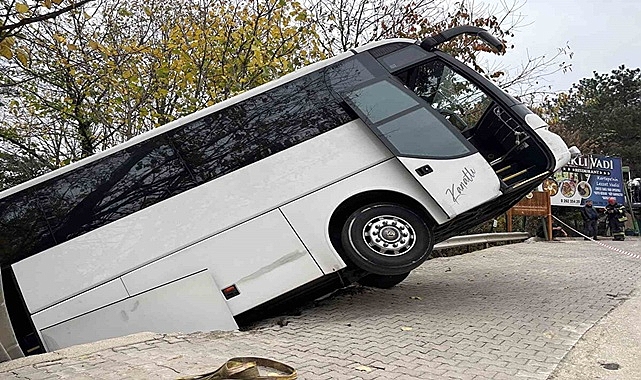 Kocaeli'nin Kartepe ilçesinde yokuşta park edilen tur otobüsü, hareket edince bariyeri aşıp şarampole düştü.Park halindeki tur otobüsü, yokuşta hareket etti. İçinde kimsenin olmadığı otobüs, bariyeri aşıp şarampole düştü.Otobüsün arka tekerlekleri toprak zemine değerken, ön kısmı havada kaldı. Kazada yaralanan olmazken ihbarla bölgeye jandarma ve itfaiye ekipleri yönlendirildi.Jandarma, otobüsün etrafını şeritle çevirerek güvenlik önlemi aldı. Otobüsün şoförü, el frenini çekmeyi unutmadığını söyledi. Otobüsün bulunduğu yerden çıkarılması için çalışma başlatıldı.