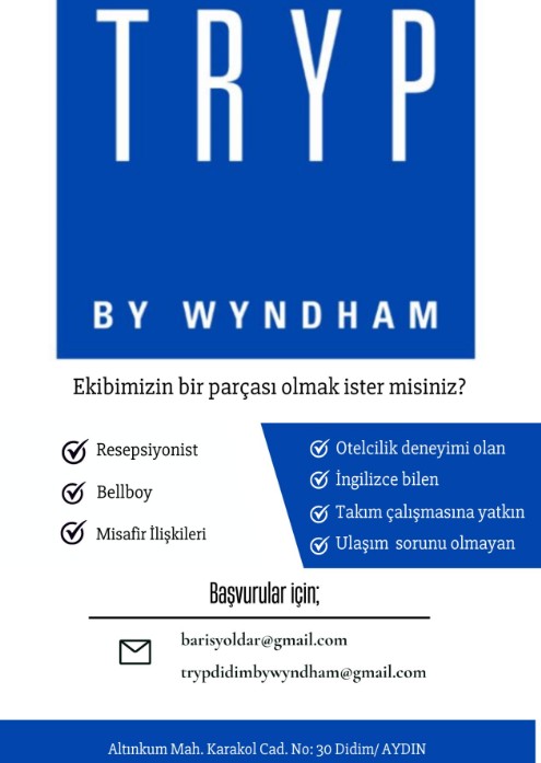Aydın’ın Didim ilçesinde yakında kapılarını açmaya hazırlanan 90 odalı TRYP by Wyndham Didim için personel alımı başladı.